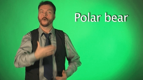Sign of the Day: We learned the sign for polar bear today, which is essentially the signs “white” and “bear” together. The below gif differs from what I learned the word for “white” is.