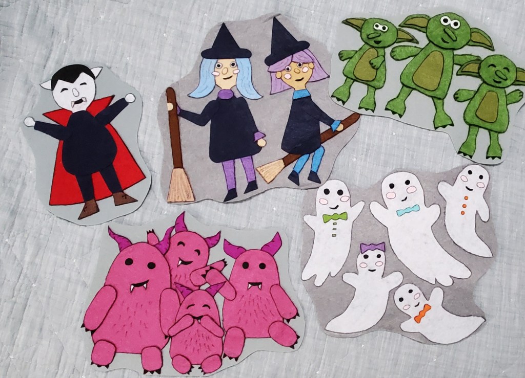 A classic cumulative Halloween-time story! I like this one for storytelling because it has such a great pace, is suspensful without being scary, and is just plain fun! It is a bit longer, so if your crowd skews young or you have an active bunch like ours then doing it first when their attention is at its best might work well. This was C’s story to tell and they did absolutely wonderful in telling it!