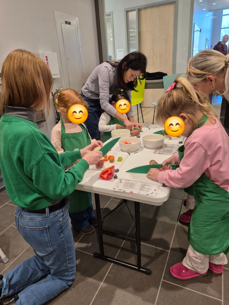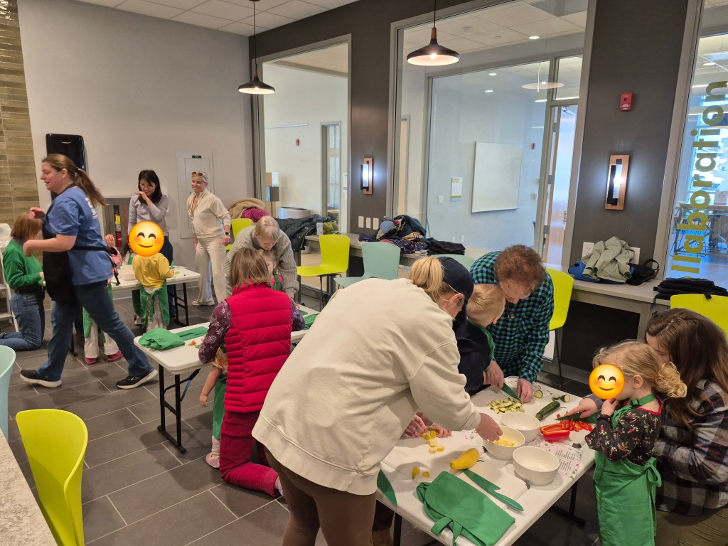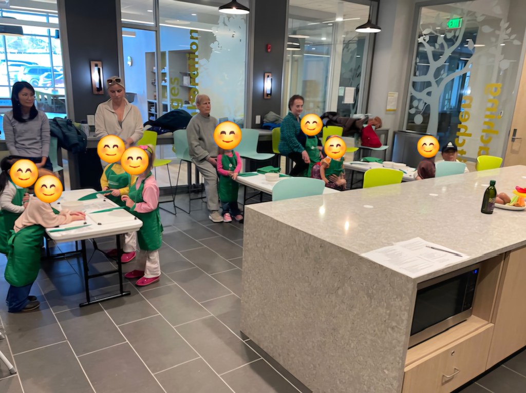 Details: This is a 1.5hr program for kids 3-6 years old with their caregiver. We set out to have two main portions of the program. 1) the cooking/instructions/hands-on component. 2) a short storytime to reinforce the foods and concepts we did during cooking, which also allows us to finish up cooking or baking as they’re getting wiggles out during the storytime.